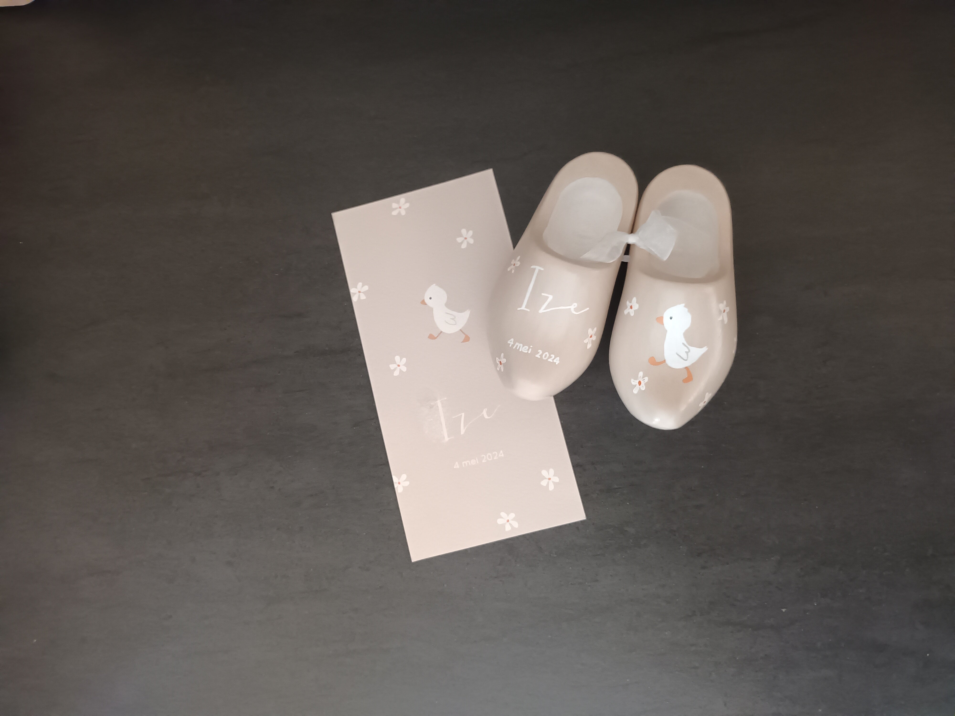 Bij ons vind je met liefde handgeschilderde geboortegeschenkjes die uniek en persoonlijk zijn. Hierbij is het geboortekaartje het uitgangspunt om zo bijvoorbeeld een spaarportje of klompjes te beschilderen. Elk stuk is met zorg gemaakt en straalt warmte en originaliteit uit. Of je nu op zoek bent naar een paar schattige klompjes, een gepersonaliseerd spaarpotje, geboortebordjes of persoonlijke geboortepoppetjes, wij hebben het voor jou. Neem gerust een kijkje in onze collectie en laat je inspireren!